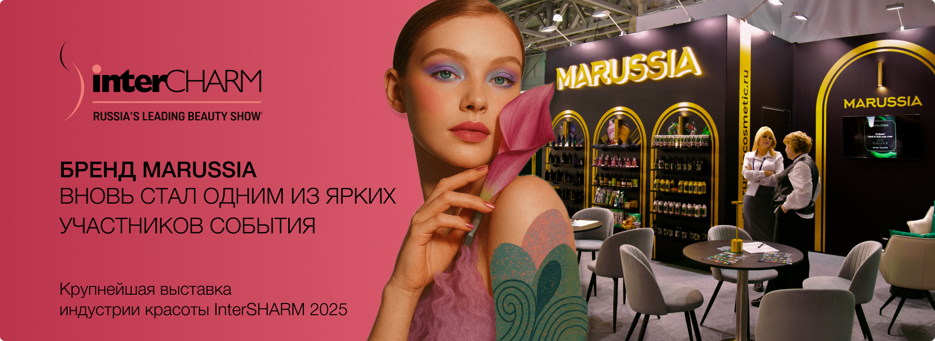 Оформленный в глубоких черных тонах с акцентами золота и яркой подсветкой, стенд Marussia выгодно выделялся среди других экспозиций. Он отражал философию, основанную на сочетании современного стиля, изысканности и уверенности в собственных ценностях. Команда консультантов и экспертов бренда встречала гостей, проводила дегустации ароматов и презентации новых продуктов, создавая атмосферу профессионального доверия и вдохновения.