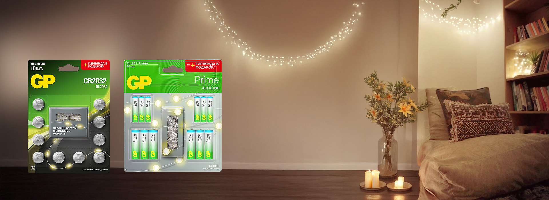- Комплект с щелочными батарейками GP Prime уже доступен на маркетплейсах Озон, ВБ и Яндекс.Маркет. Его можно заказать прямо сейчас и начать украшать дом.