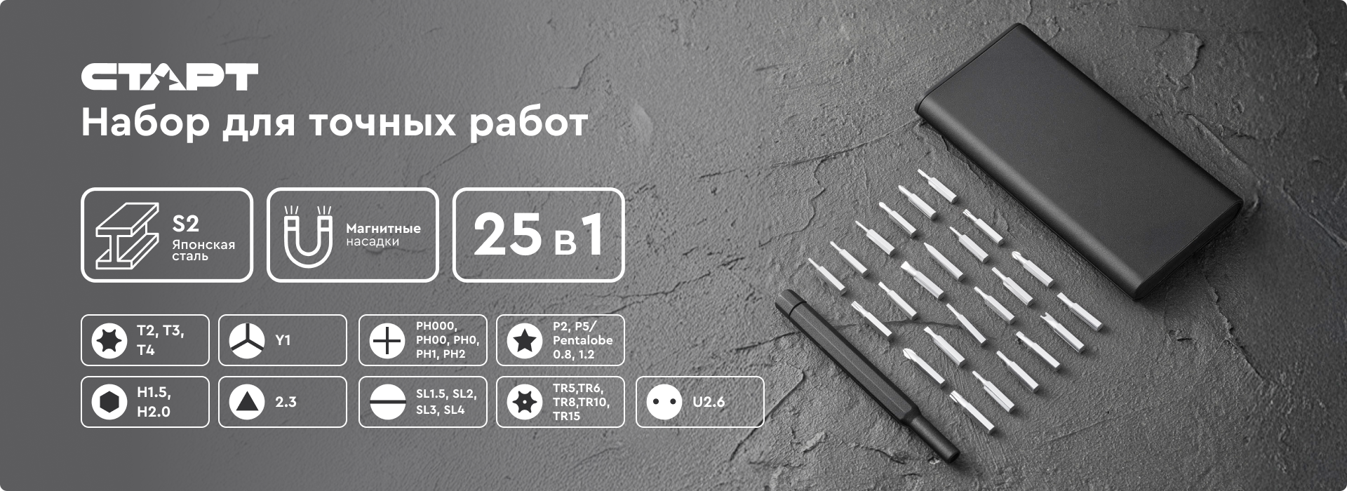 Набор отверток под брендом СТАРТ уже доступен в продаже и может стать надежным помощником для всех, кто ценит качество, универсальность и точность в работе с техникой.