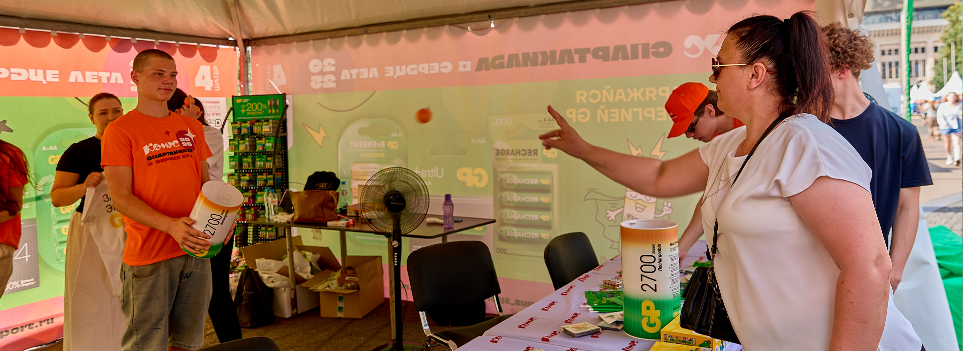 В рамках фестивального городка GP организовал интерактивный шатер и за день его смогли посетить более 5 000 человек. Гости и спортсмены с энтузиазмом участвовали в конкурсах, пробовали силы в игровых зонах и получали в качестве призов стильные наклейки, светоотражающие браслеты, магниты, батарейки GP с технологией G-TECH. Кроме того, каждый желающий мог сдать использованные батарейки на переработку, поддержав инициативу осознанного потребления.